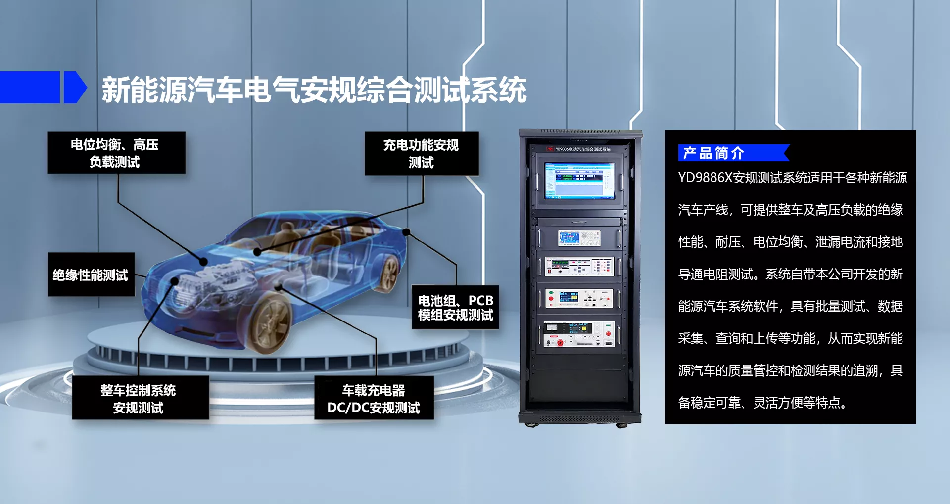 扬子安规测试仪广泛应用于新能源、电动车辆、家用电器、电机线圈、开关电源